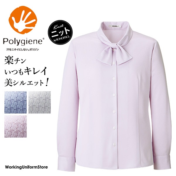 事務服【抗菌防臭/ニット】長袖リボンブラウス RB4172 ボンオフィス トゥインクル千鳥ニット