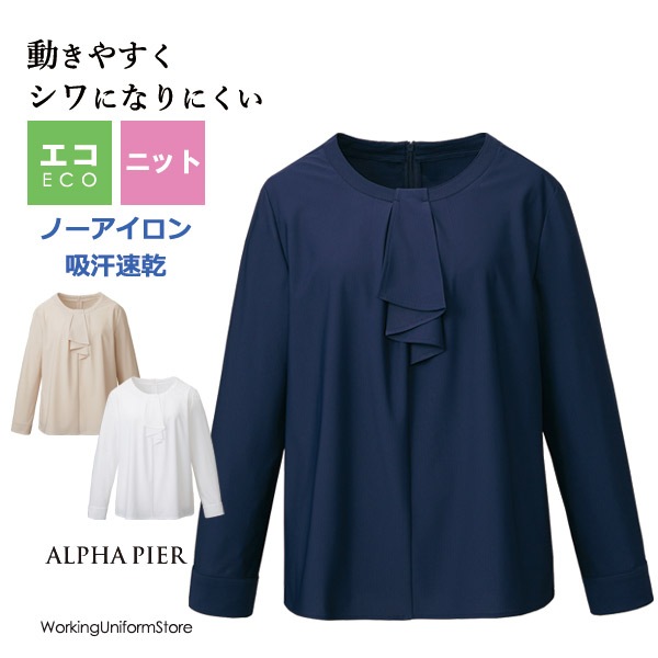 【抗菌 消臭 ニット】事務服 長袖シャツブラウス AR1486 ドットニット アルファピア