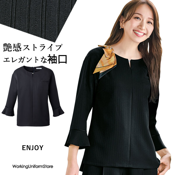 事務服 八分袖プルオーバー EWT1011 グロッシーシャドーストライプ エンジョイ