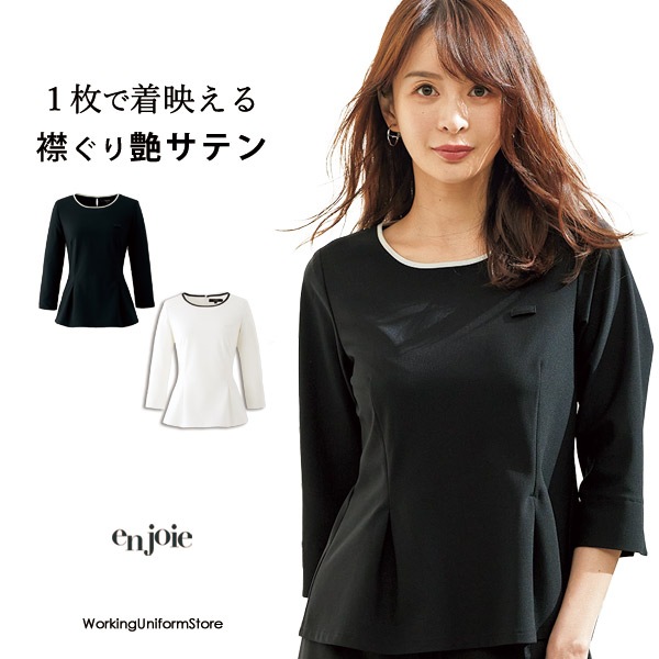 ノワール 八分袖スタンドカラーブラウス EWB945 シルキーファイユ エンジョイ事務服