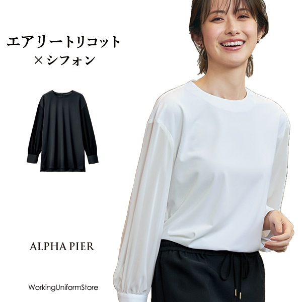 【抗ウイルス/高通気ニット】事務服プルオーバー AR7611 アルファピア コンフォータブルニット