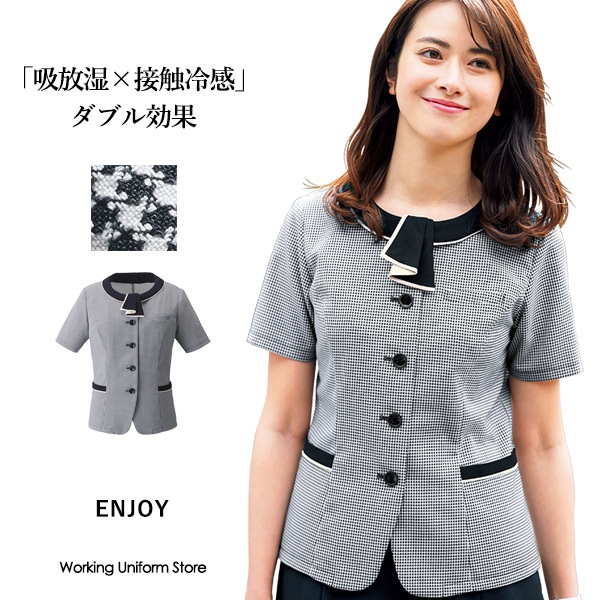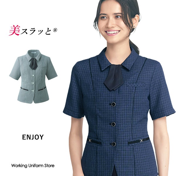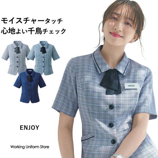 エンジョイ オーバーブラウス ESA923 モイストカラーチェック 事務服
