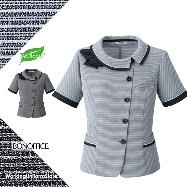 【エコ素材】事務服 オーバーブラウス AJ0849 ボンオフィス セレストボーダー