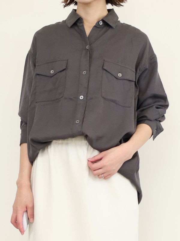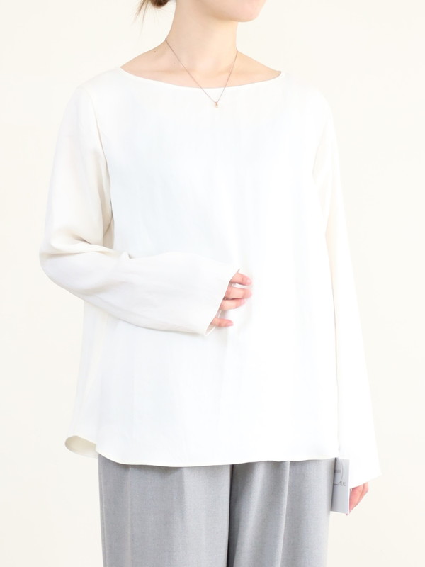 TreBarraBi シャツ衿異素材コンビブラウス オフ