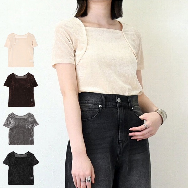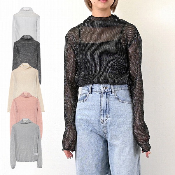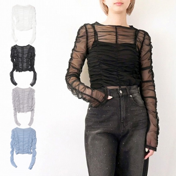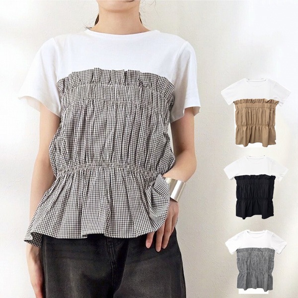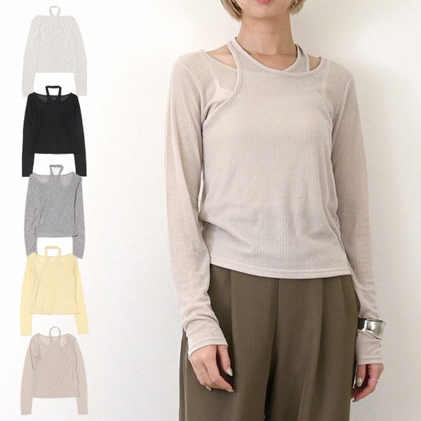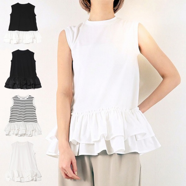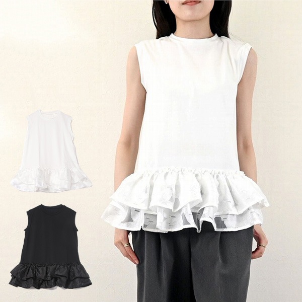 ワイドリブ×オーガンジー2WAYフリルトップス