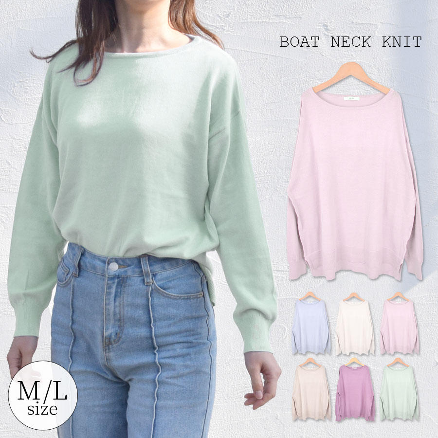 ニット セーター 綿100% ボートネック ニットソー レディース トップス 長袖 チクチクしない 【送料pt100】