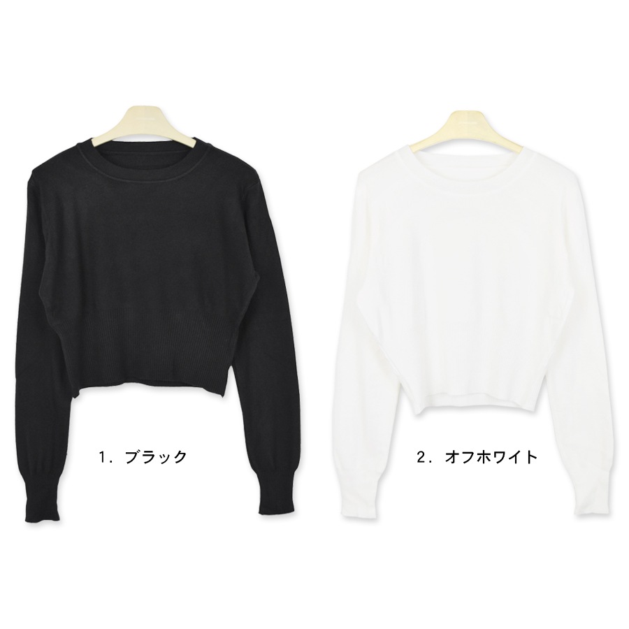 ニット レディース ショート丈 ニットソー トップス 薄手 リブ 切り替え 長袖 シンプル 無地 【送料pt100】