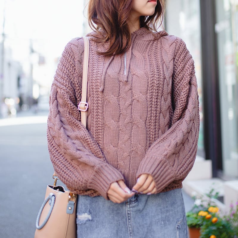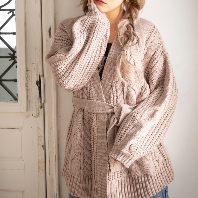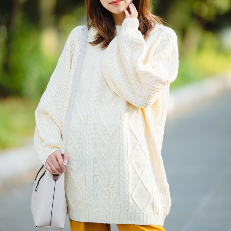 ニット セーター レディース トップス 長袖 ケーブル模様 ケーブル編み ざっくり シンプル 定番 【送料pt100】