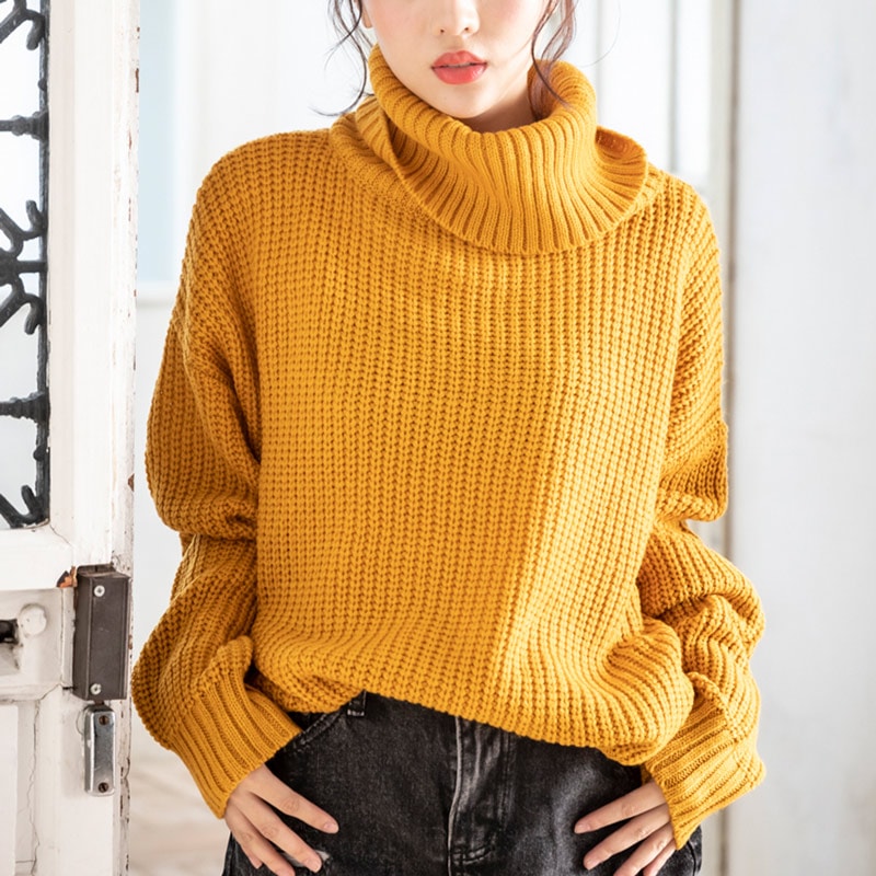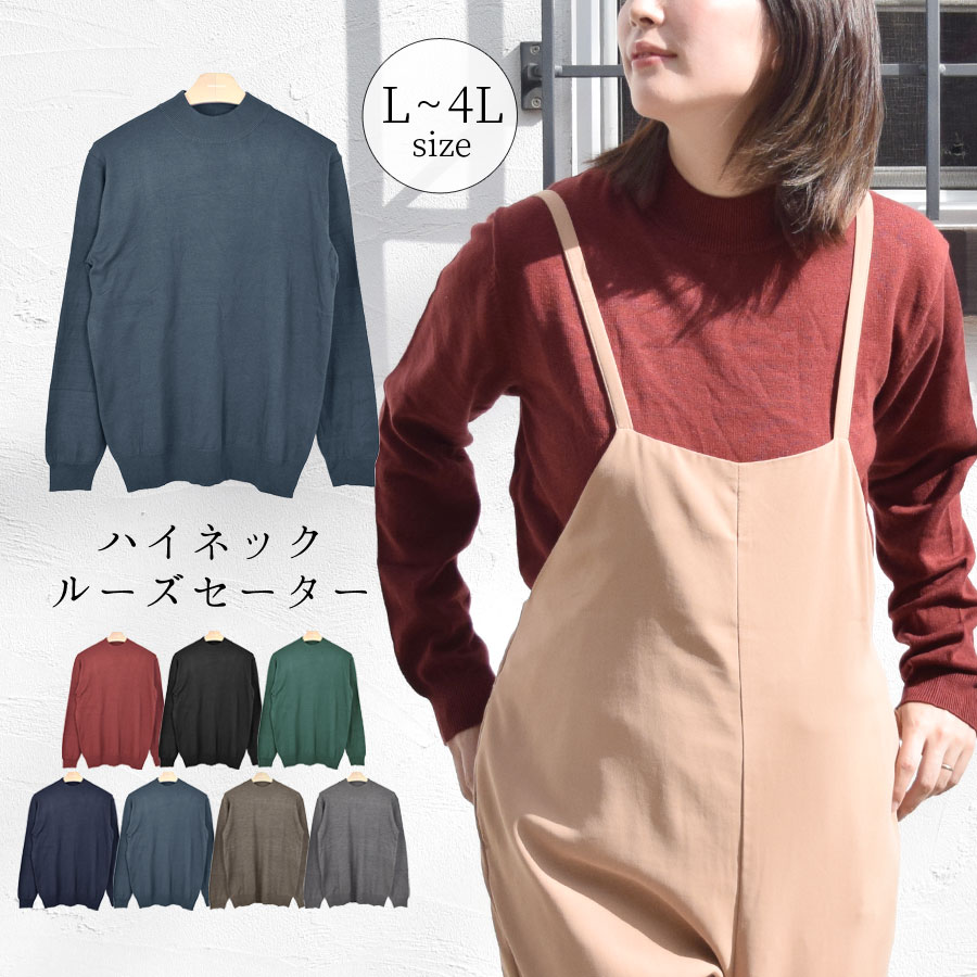 ニット セーター ハイネック 長袖 レディース トップス 首つまり シンプル 無地 ニットソー 定番 【送料pt100】