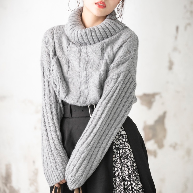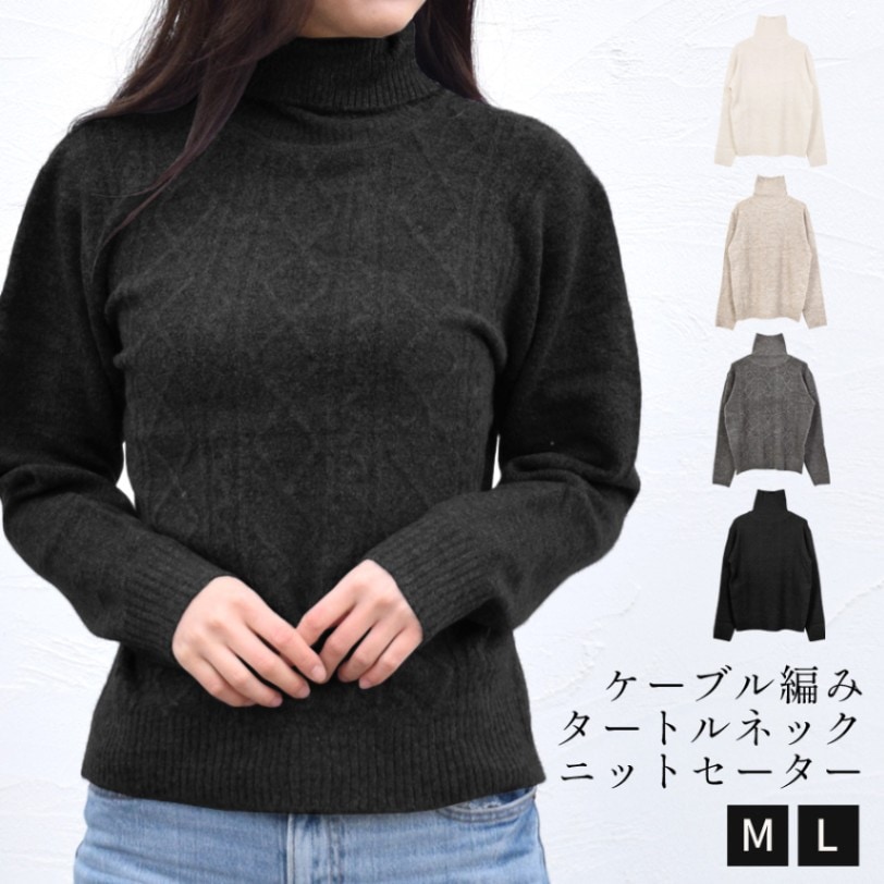 ニット タートルネック セーター レディース トップス 長袖 ケーブル編み ケーブル模様 薄手 【送料pt100】