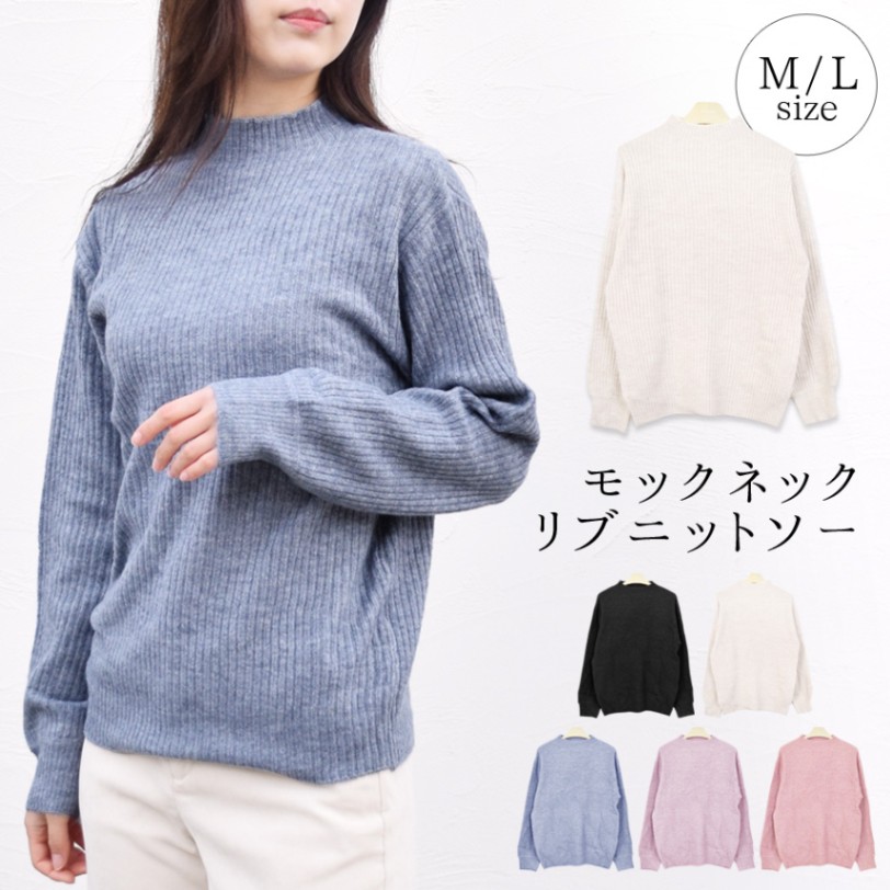 ニット セーター リブ地 リブニット モックネック ハイネック レディース トップス 長袖 薄手 【送料pt100】