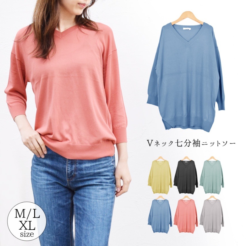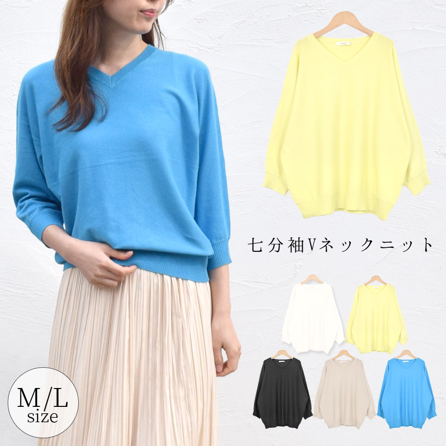 ニット Vネック ニットソー 薄手 七分袖 レディース トップス ドルマンスリーブ ゆったり 【送料pt100】