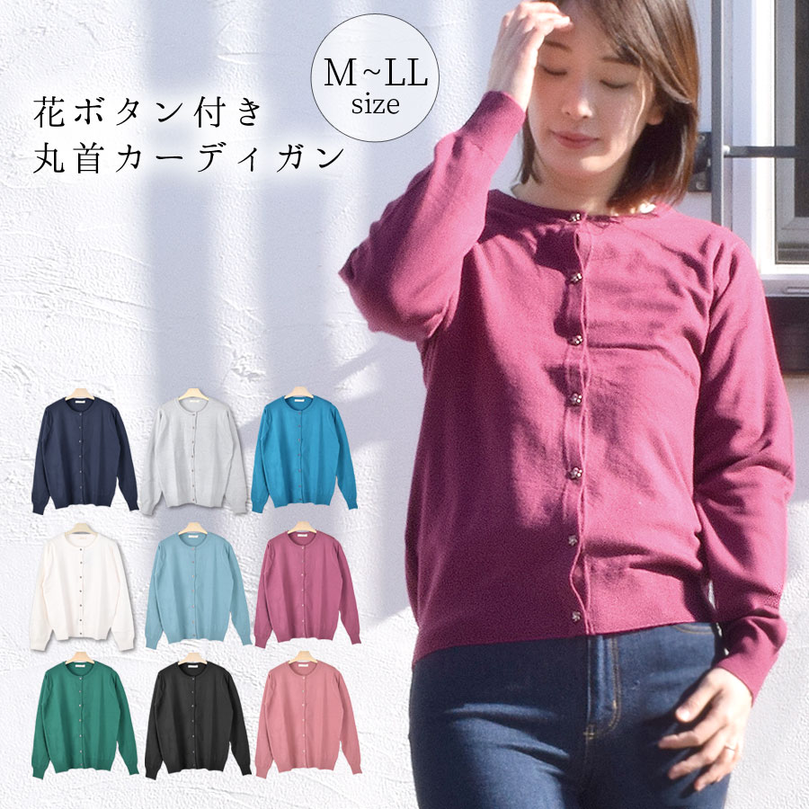 カーディガン ニットカーデ 長袖 花ボタン 丸首 レディース トップス 羽織り ニット クルーネック 【送料pt100】