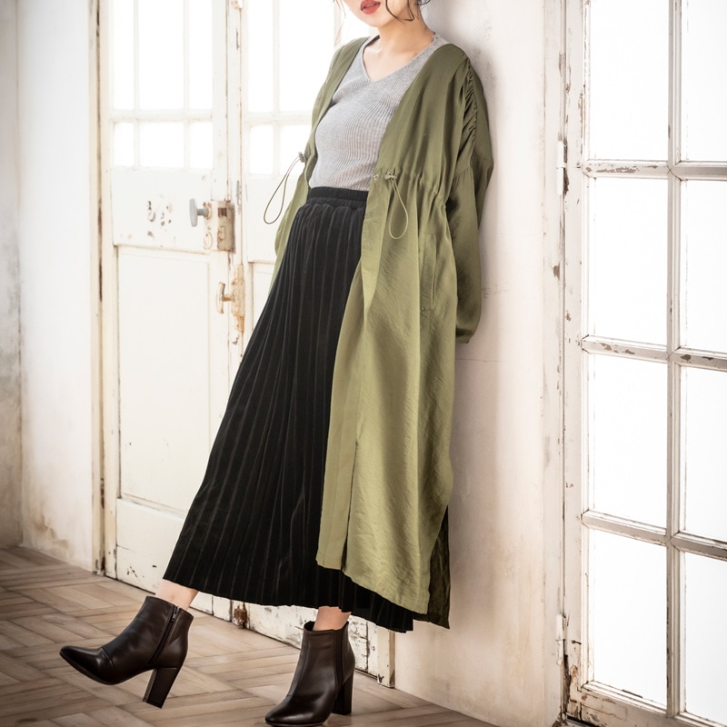 レディース ロング丈 トレンチコート テーラード コート アウター ウエストマーク ゆったり ベーシック シルエット 体型カバー ...