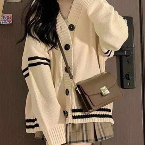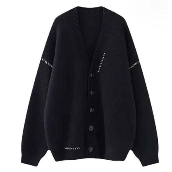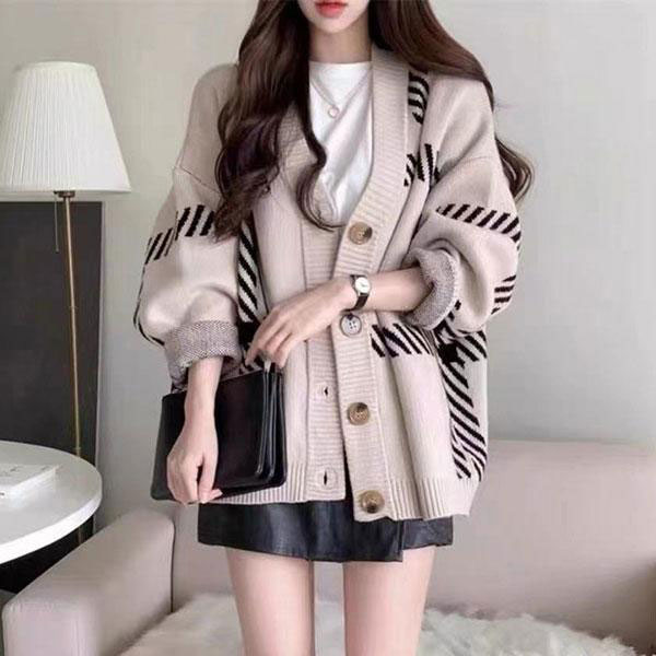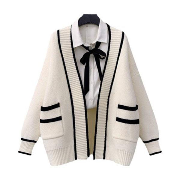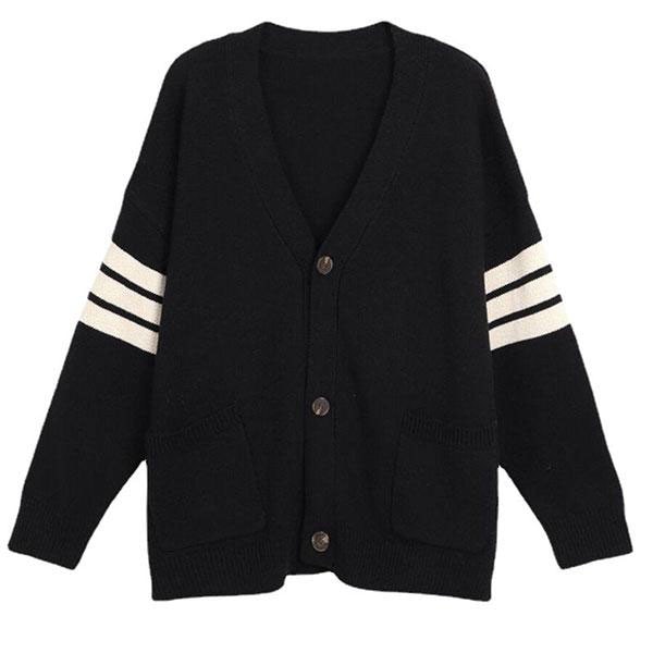 レディース ライン入り Vネック カーディガン 長袖 ジャケット アウター オーバーサイズ リラックス カジュアル シルエット 羽...