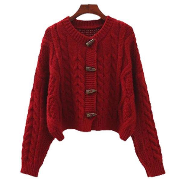 レディース ケーブルニットカーディガン 長袖 2カラー トグルボタン アクセント シンプルデザイン 可愛い ゆったり オーバーサイ...