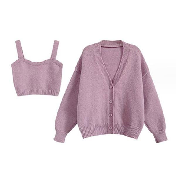 レディース ニット アンサンブル 長袖カーディガン&タンクトップ フリーサイズ 2カラー ゆったりサイズ カジュアル フェミニン ...