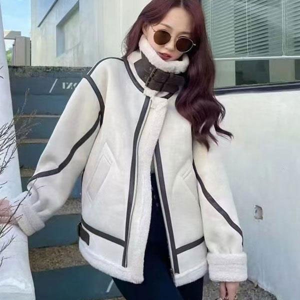 レディース アウター ライダース ジャケット コート ムートンコート 裏ボア ブルゾン レザー ゆったり 韓国ファッション 秋 冬