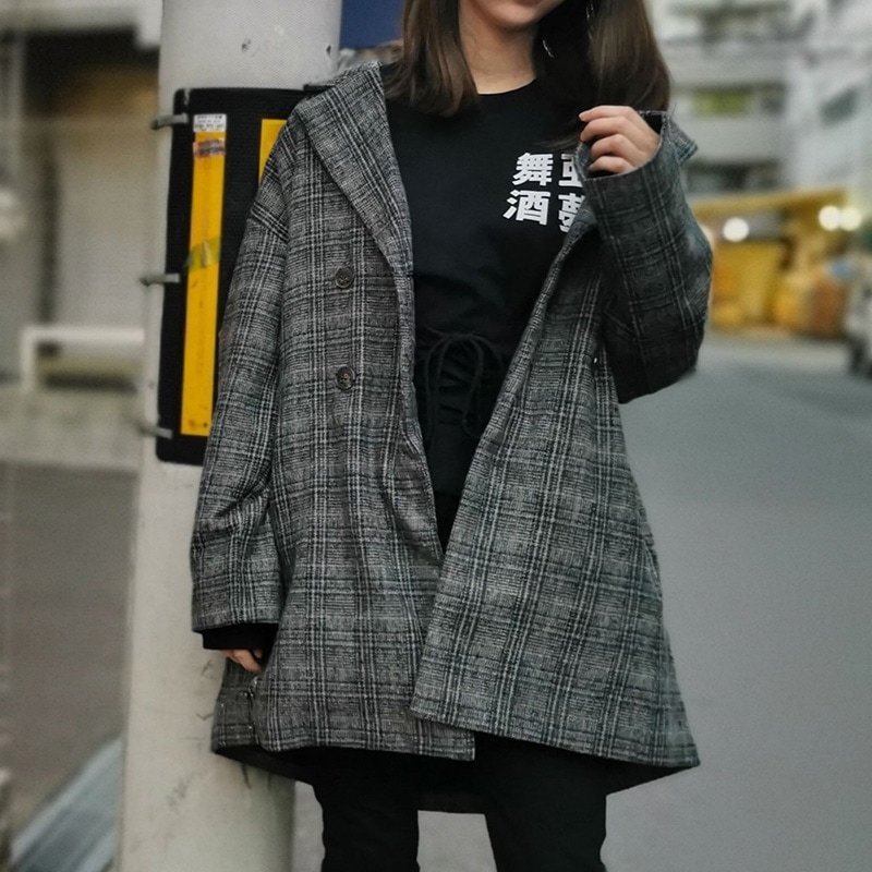レディース 長袖 カーディガン チェック柄 フリーサイズ 2カラー オーバーサイズ かわいい ラフ カジュアル 大きなボタン アク...