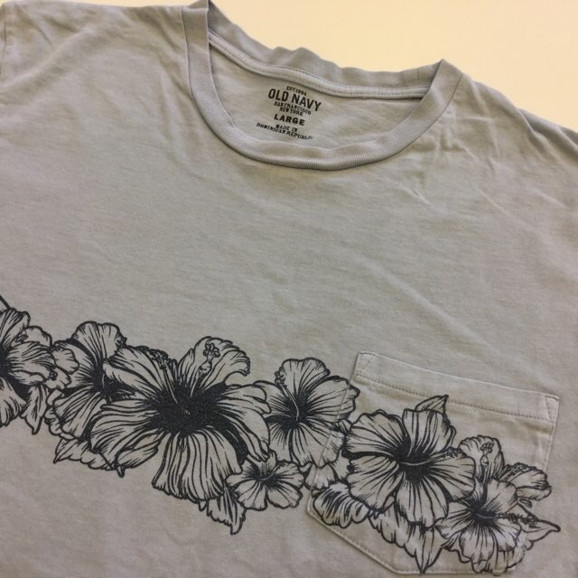 OLD NAVY オールドネイビー アメリカ輸入 ハイビスカス 半袖Tシャツ L/水色 送料無料 ポケットT ハワイ ライン US...
