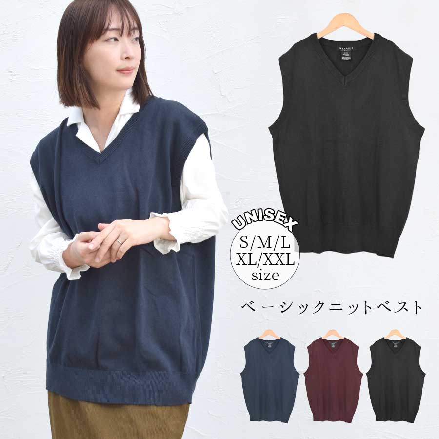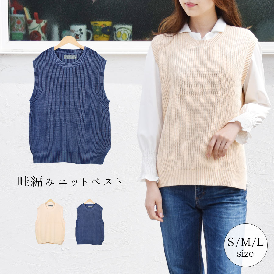 ニットベスト ゆったり ユニセックス 男女兼用 畦編み レディース メンズ ノースリーブ ニット 【送料pt100】
