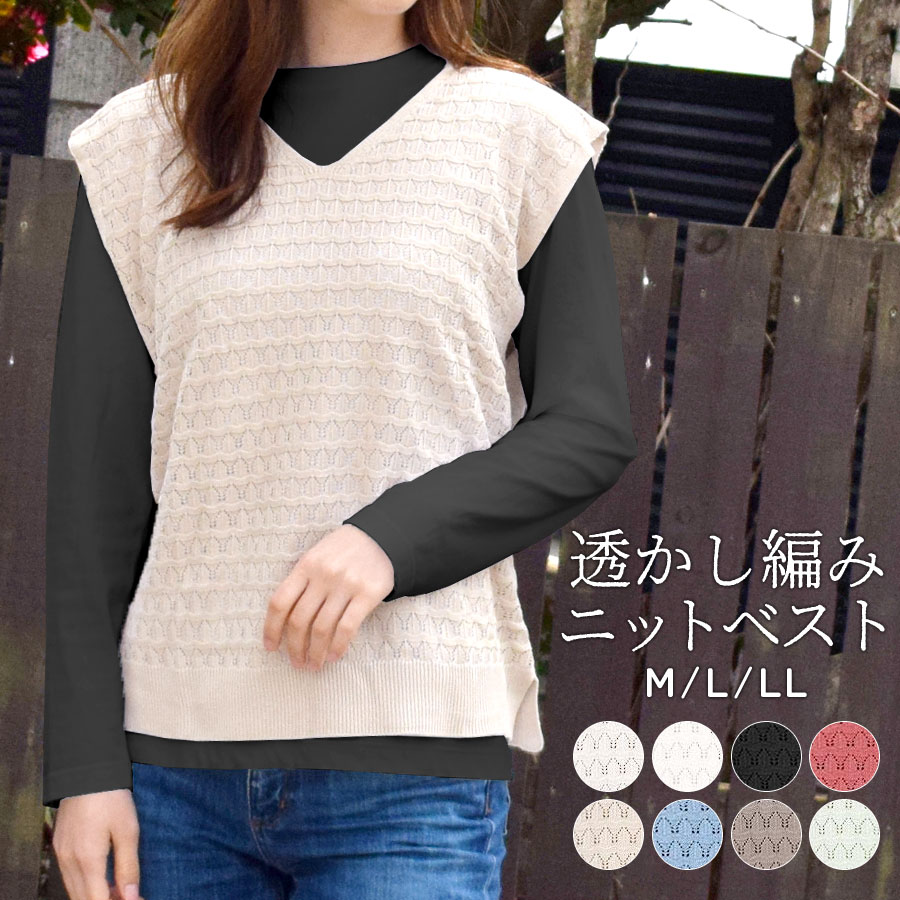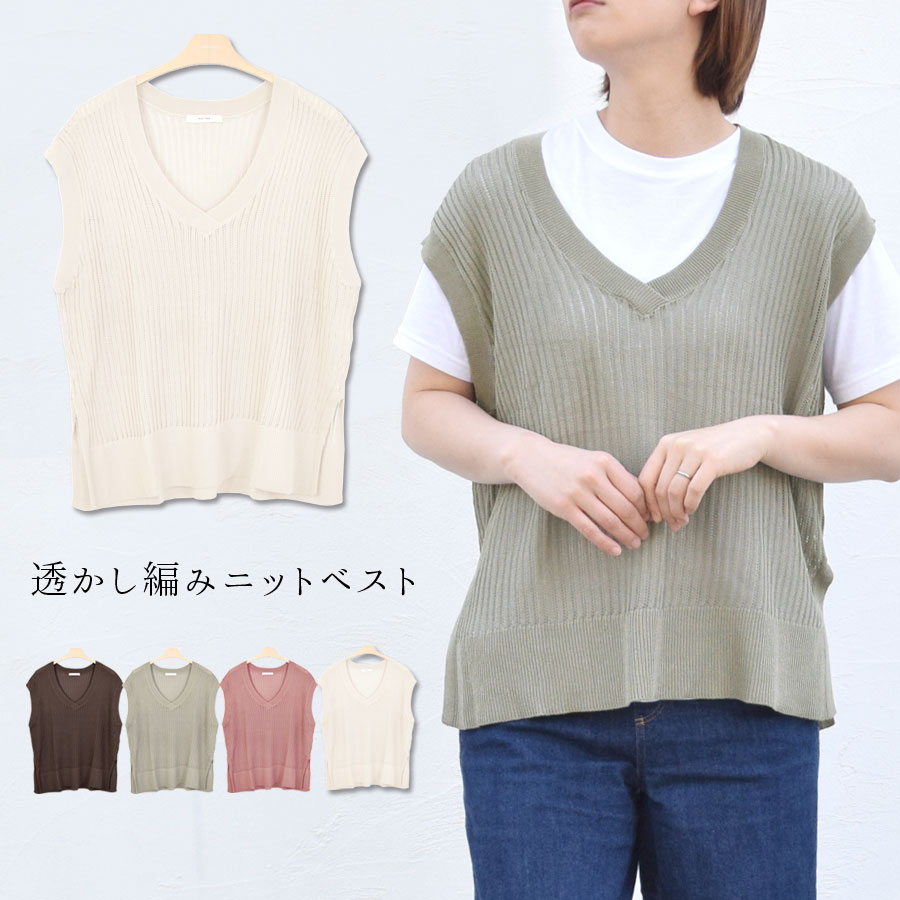 ニットベスト 透かし編み メッシュ Vネック レディース トップス ノースリーブ ベスト ゆったり 【送料pt100】