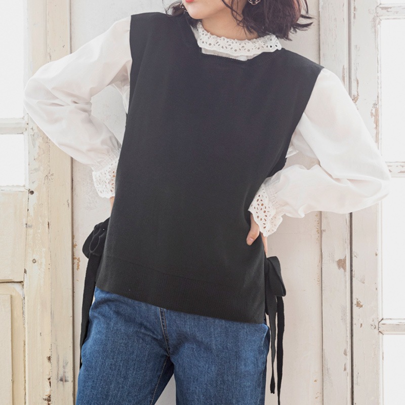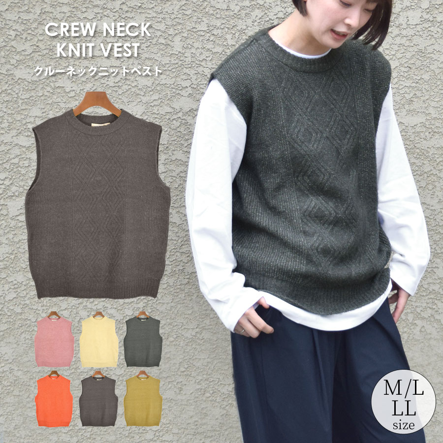 ニットベスト レディース クルーネック 秋 トップス ベスト プルオーバー ニット セーター 【送料pt100】