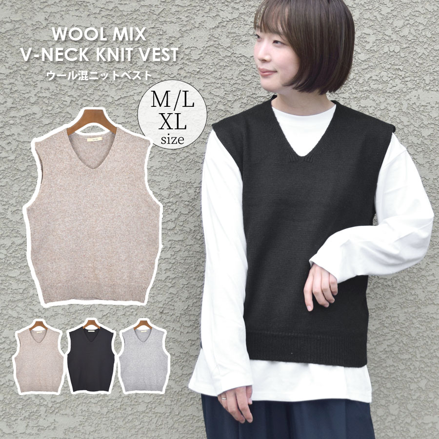 ニットベスト レディース Vネック ベスト 秋冬 ウール混 ジレ セーター トップス ニット 【送料pt100】