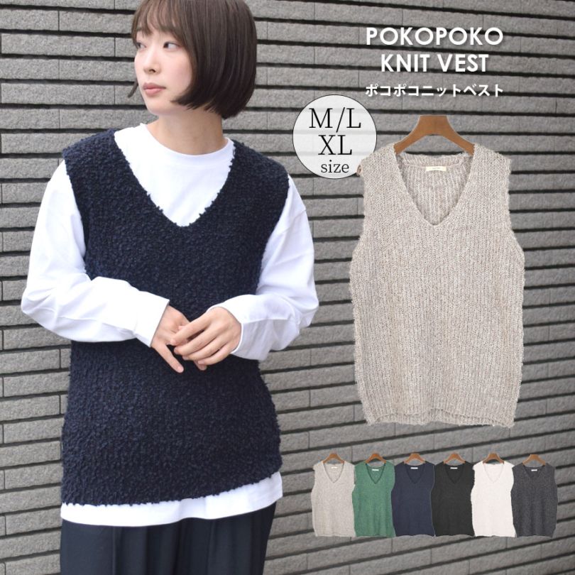 ニットベスト レディース Vネック ベスト 秋 プルオーバー トップス モコモコ ポコポコ ブークレ 【送料pt100】
