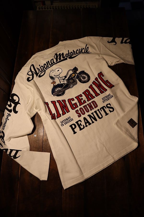 FLAG STAFF フラッグスタッフ×Snoopy スヌーピー 413022 刺繍 長袖Tシャツ バイク ホワイト