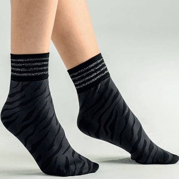 イタリアインポートソックス BELLISSIMA TIGER アニマル柄ラメソックス 黒