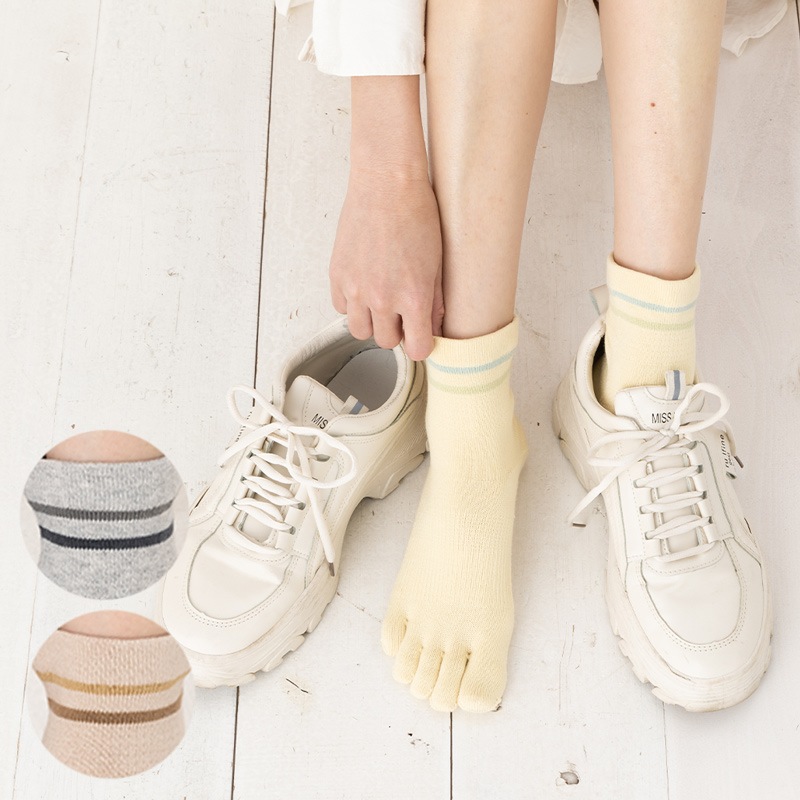 ライン入り サポート ロークルー 5本指ソックス 日本製 XS(20-22cm) S(22-24cm) 【10383】