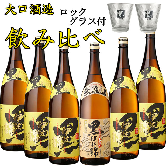 【送料無料】大口酒造飲み比べグラス付きセット 黒伊佐錦1800ml×5本・黒伊佐無濾過1800ml×1本