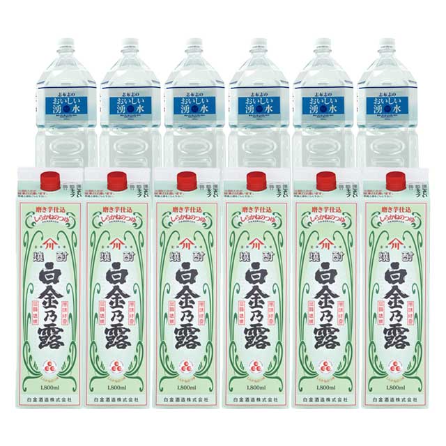【送料無料】白金乃露 25度 パック 1800ml 芋焼酎・志布志の湧水2000ml×各6本 計12本