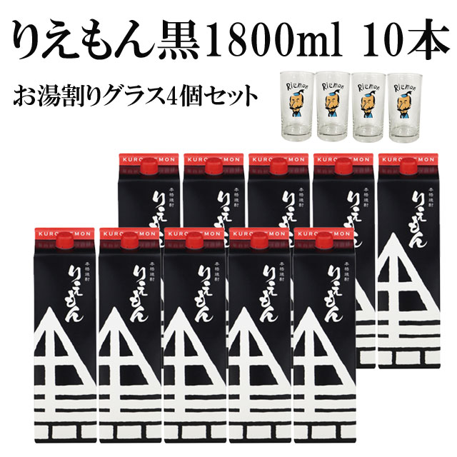 【送料無料】黒利右衛門 パック 1800ml×10本+お湯割りグラス 4個 芋焼酎 指宿酒造
