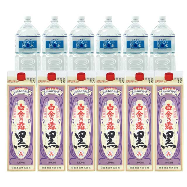 【送料無料】白金乃露 黒 25度 パック 1800ml 芋焼酎・志布志の湧水2000ml×各6本 計12本