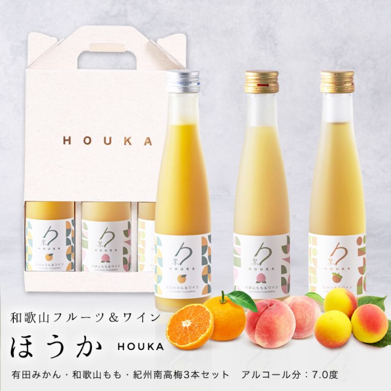 和歌山フルーツワイン3本セット(みかん、桃、南高梅)各180ml 箱入芳醇なフルーツの風味を楽しむ果実入り白ワイン送料無料※北海道...