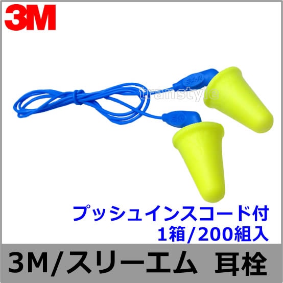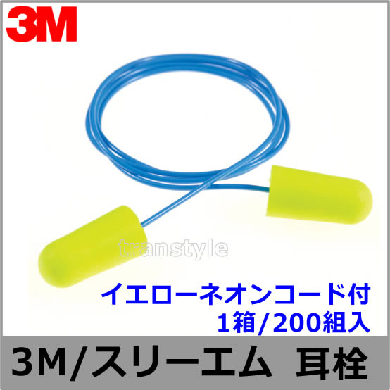 耳栓 3M イエローネオンコード付 (1箱/200組) 311-1250 ひも付 正規品 スリーエム (遮音値33dB) 【睡眠 ...