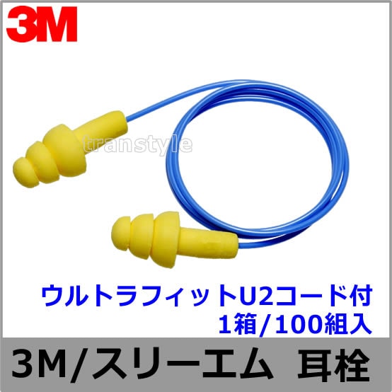 耳栓 3M ウルトラフィットU2コード付 (1箱/100組) 340-4004 シリコン 正規品 スリーエム (遮音値25dB) ...