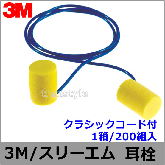 耳栓 3M クラシックコード付 (1箱/200組) 311-1101 ひも付 正規品 スリーエム (遮音値29dB) 【睡眠 聴覚...