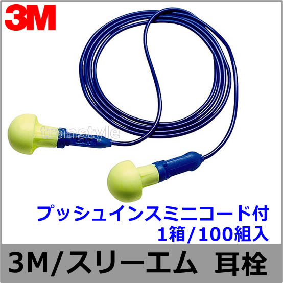 耳栓 3M プッシュインスミニコード付 (1箱/100組) 318-1001 正規品 スリーエム (遮音値28dB) 【睡眠 聴覚...