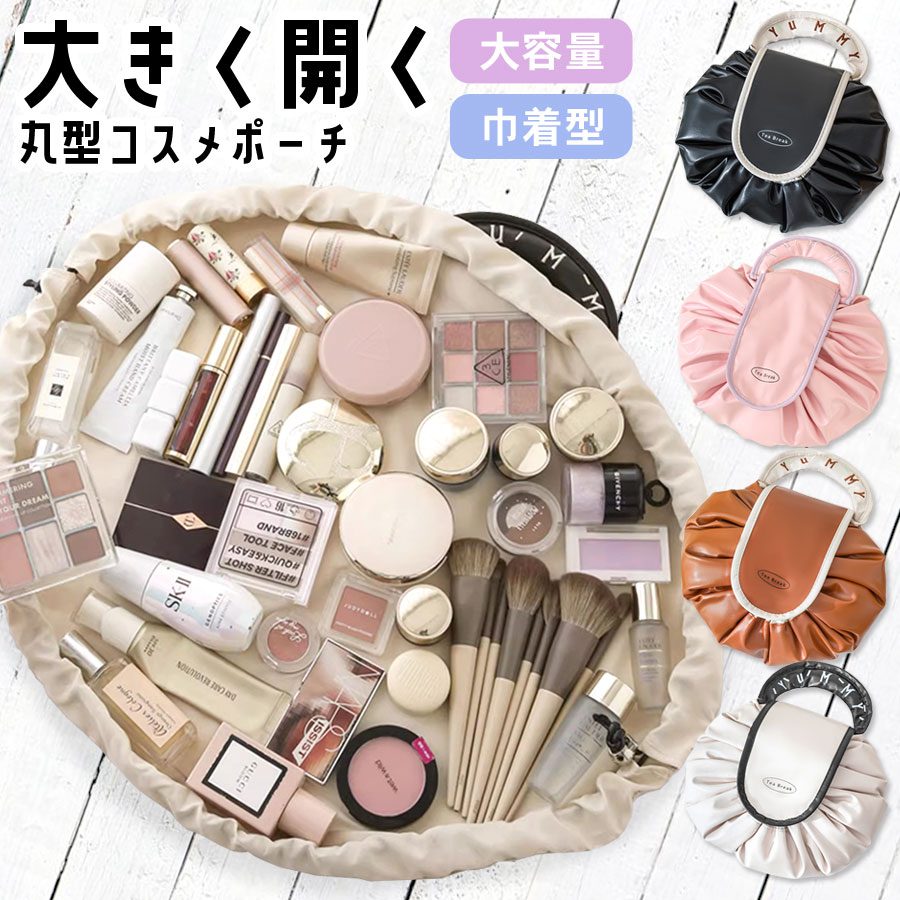 コスメポーチ 化粧ポーチ 大容量 大きく開く 持ち歩き コンパクト 丸型 サークル おしゃれ 大きめ 【送料pt100】