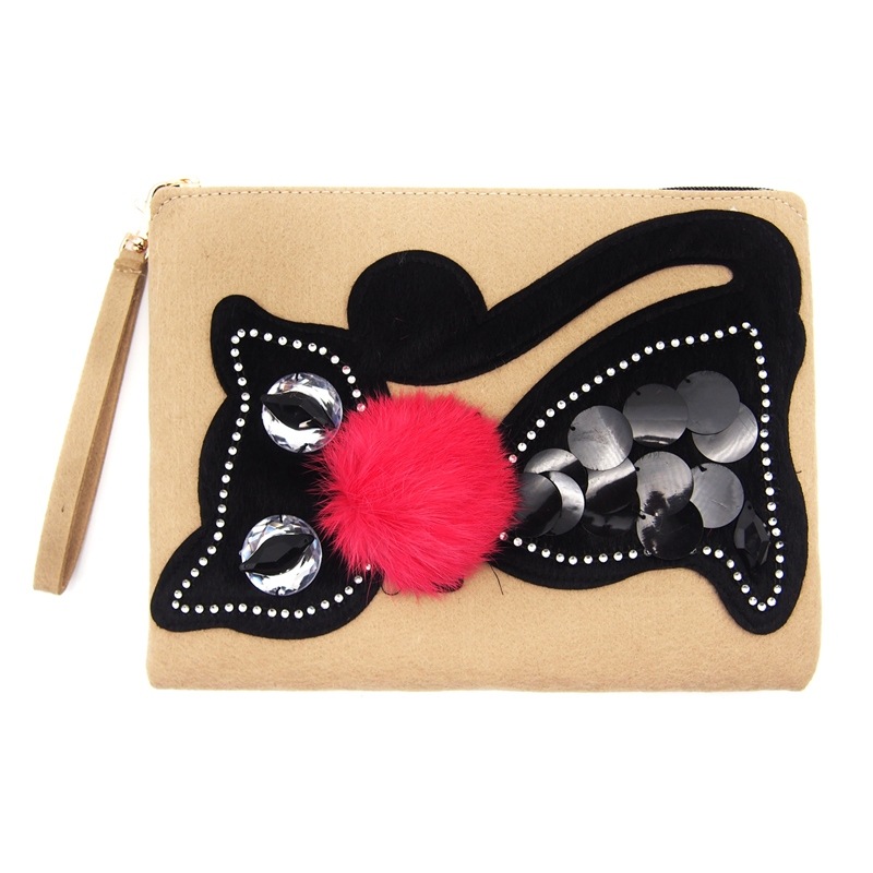 ファスナー平ポーチ 中53(ブラウン×グリーン)ふわふわ中綿入りスマートフォン モバイル周辺機器収納に