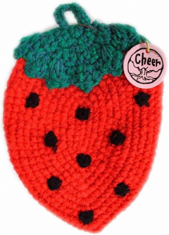ファスナー平ポーチ 中55(グリーン×レッド)ふわふわ中綿入りスマートフォン モバイル周辺機器収納に