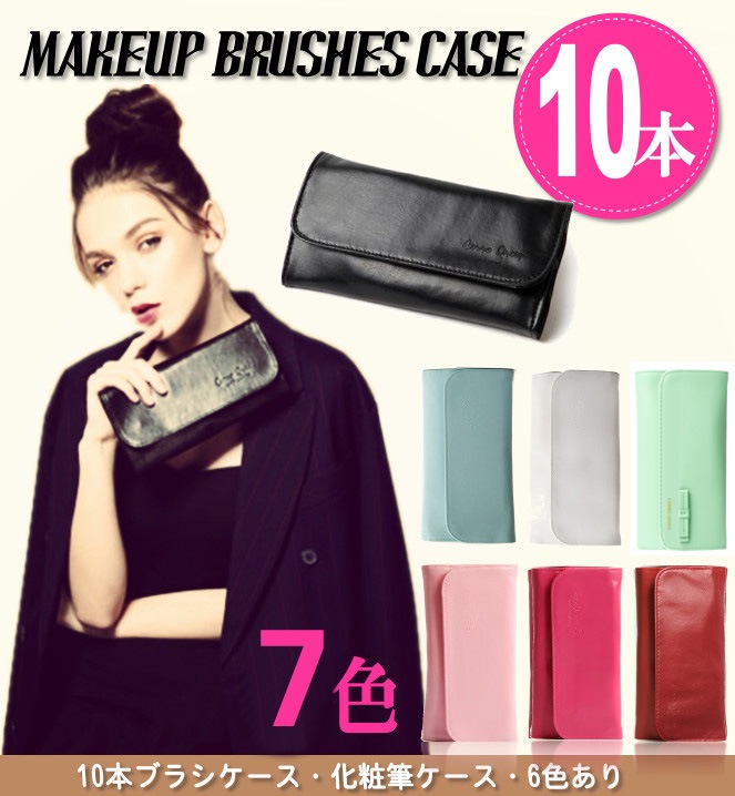 10本収納ブラシケース 化粧筆ケース メイクポーチ ツィーザーポーチ ネイル筆ケース ブラック ケースのみ STB-1007