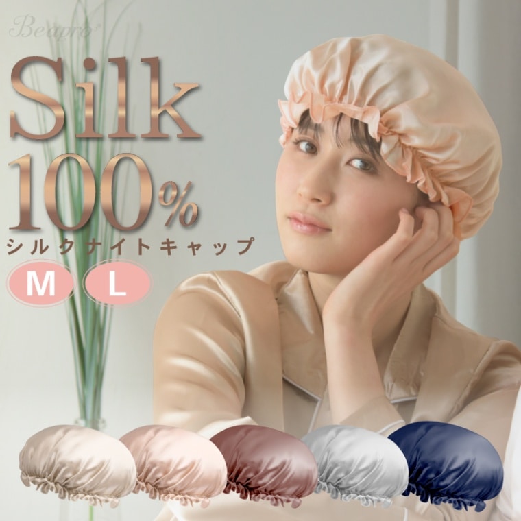 ナイトキャップ シルク シルク100% M/L 冷感 ロングヘア シルクキャップ ヘアケア 美髪 艶髪 絹 かわいい 洗える おし...