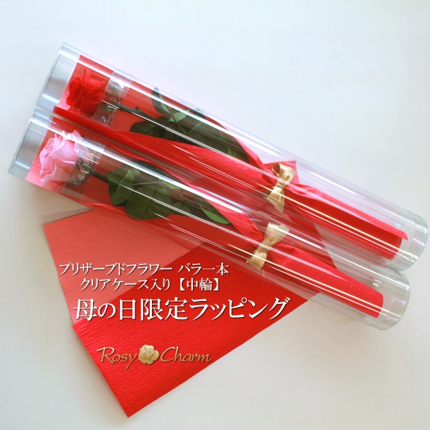 【母の日限定ラッピング】プリザーブドフラワー バラ一本|クリアケース入り【中輪】|メッセージフラワー対応|母の日に贈る 花ギフト