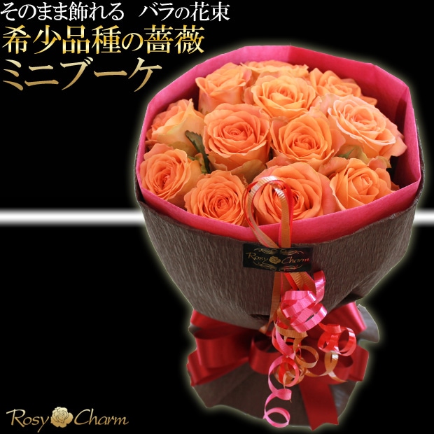 ミニブーケ(希少品種の薔薇)|そのまま飾れるバラの花束 【オレンジ】 誕生日・結婚記念日・お祝いに贈る花