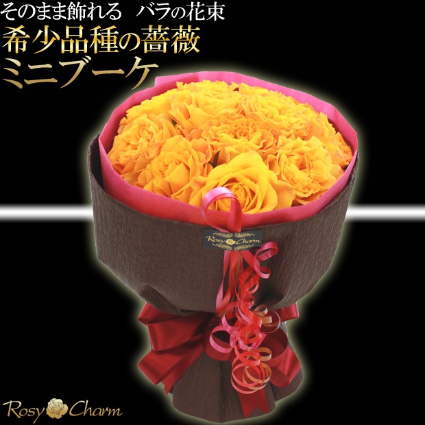 ミニブーケ(希少品種の薔薇)|そのまま飾れるバラの花束 【オレンジイエロー】 誕生日・結婚記念日・お祝いに贈る花