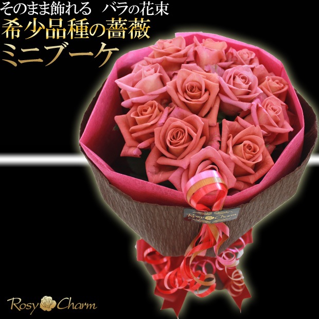 ミニブーケ(希少品種の薔薇)|そのまま飾れるバラの花束 【ブラウンパープル】 誕生日・結婚記念日・お祝いに贈る花